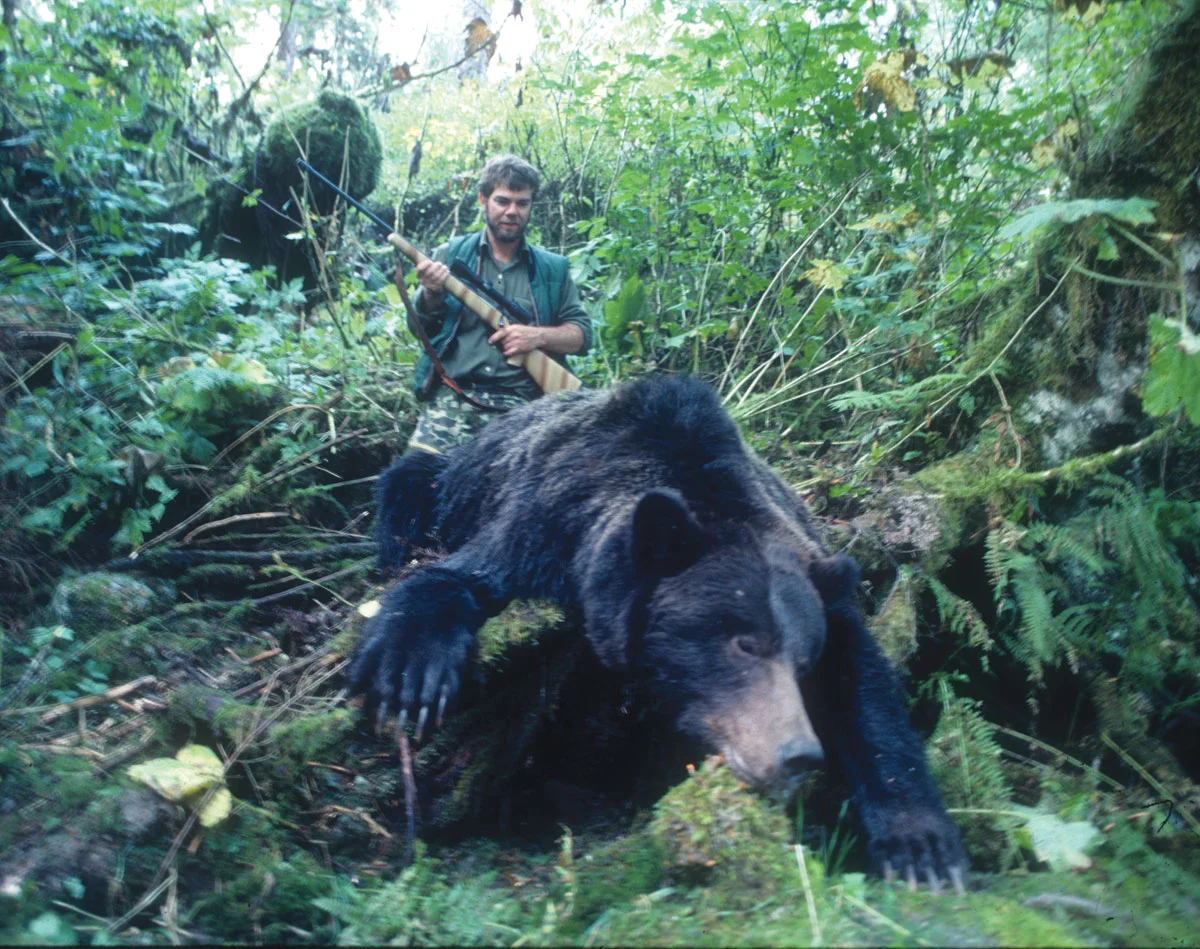 I kept the gun trained on the bear in the dim light of dusk, trying to control the shaking. Suddenly the grizzly’s head began to rise and I fired again at the exposed chest. Finally, the bear lay still.