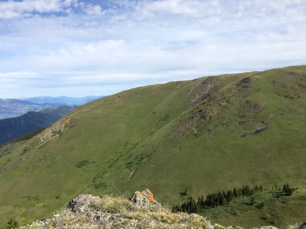 Our first trip to the area was a guessing game on how to best access the alpine. I had found one draw that would take us up to one end of the ridge with the least amount of distance to cover, but we most certainly weren’t expecting the amount of windfall and steepness that we encountered. With the slow going, getting up there relatively late in the evening, we were losing light quickly. At the first sign of an opening, we busted out of the draw and up the slope. I stopped to wipe the sweat pouring off my brow, catch my breath and wait for Terry who was about 150 metres below me.