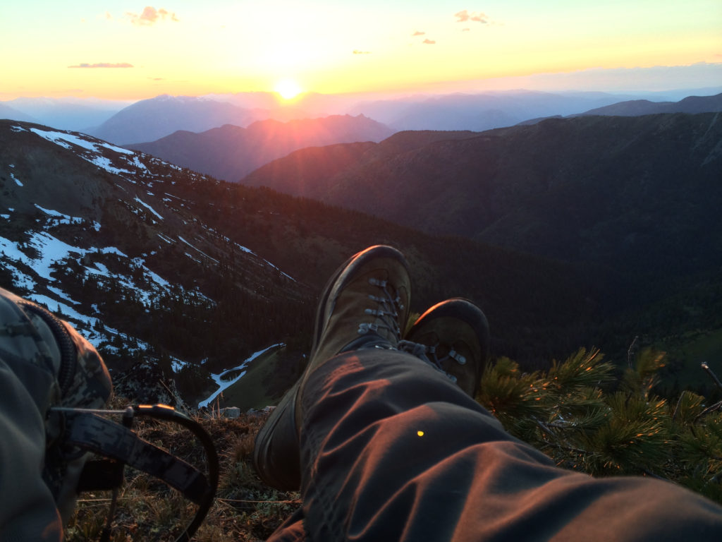 When we hit the top and came out of the trees, we were completely spent; we decided to go no further, drop our packs and set up camp while we still had about five minutes of natural light between us and complete dark. (Ironically, this spot became the location we have camped at every time we headed up this mountain, as it is one of the best glassing spots we have found in the whole range.)